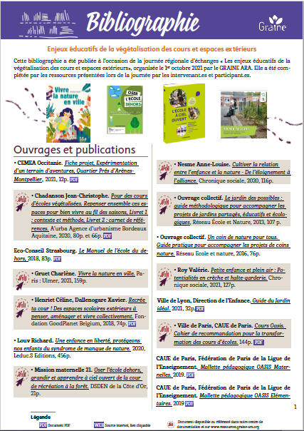 Bibliographie "Enjeux éducatifs de la végétalisation des cours et espaces extérieurs"